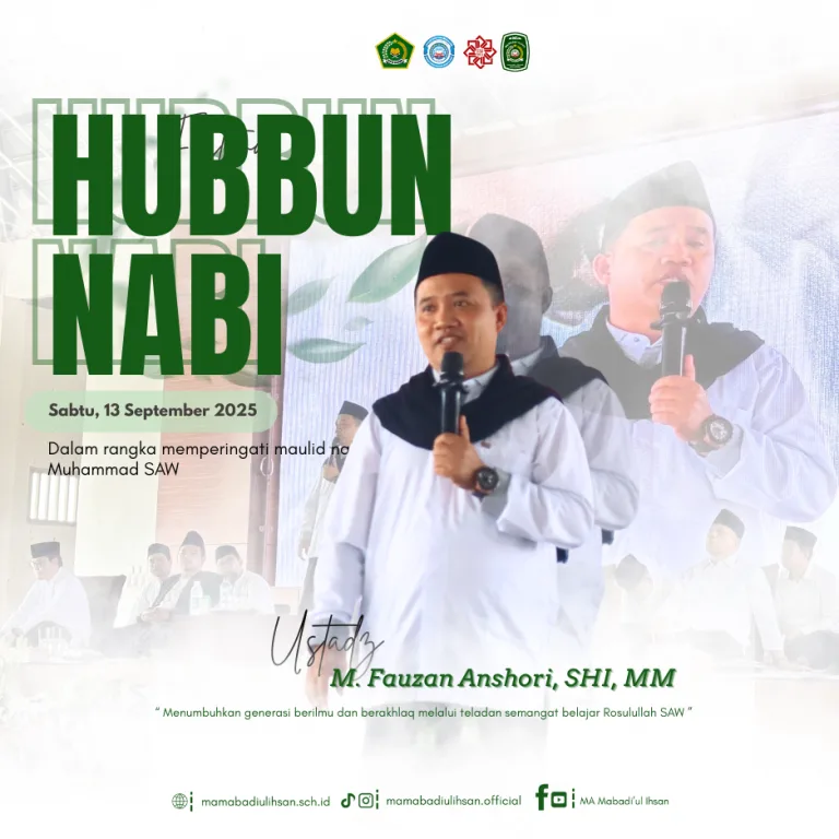 MA Mabadi’ul Ihsan memperingati Maulid Nabi Muhammad SAW. pada Sabtu (13, September, 2025). Kegiatan tersebut diselenggarakan di aula gendung pendidikan atas, dengan mengusung tema “Menumbuhkan generasi berilmu dan berakhlak melalutteladan semangat belajar Rosulullah SWT”. Dalam peringatan Maulid Nabi kali ini dihadiri Pengasuh Pondok pesantren Mabadi’ul Ihsan H. ibu murtsimah zuhaira, Penasehat. Ning dewi karimah, pengasuh pondok pesantren DAR AL Musthofa KH. Maskur Wardi dimniati, Gus sukron Makmun Hidayat, Gus Azam, Ning Izza nur azizah.