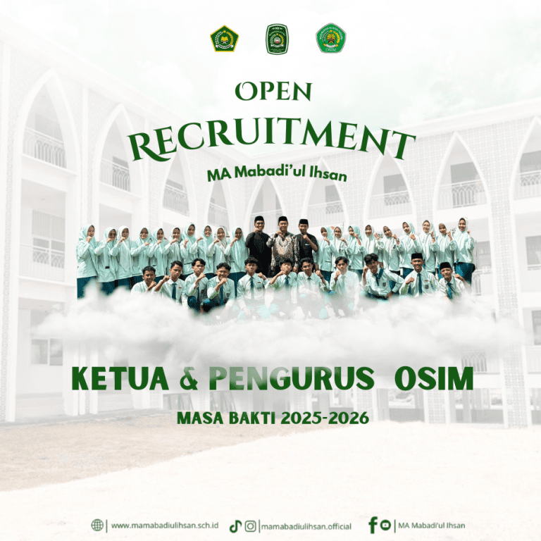 MA Mabadi’ul Ihsan secara resmi membuka pendaftaran OSIM (Organisasi Siswa Intra Madrasah) mencakup Ketua, Wakil Ketua, serta Anggota OSIM untuk Periode 2025/2026.