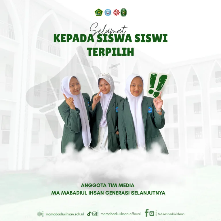 Alhamdulillah, selamat kami ucapkan kepada seluruh siswa-siswi MA Madrasah yang telah lolos seleksi Tim Media. Keberhasilan ini merupakan bukti dari semangat, kreativitas, dan dedikasi dalam mengasah bakat di bidang jurnalistik, desain, fotografi, maupun publikasi.