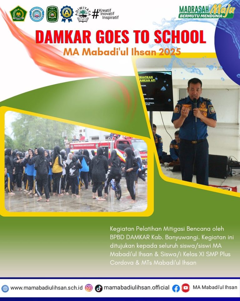 Banyuwangi, 19 Mei 2025 – MA Mabadi’ul Ihsan menjadi pusat pelatihan kebencanaan yang menghadirkan tim profesional dari BPBD Banyuwangi, DAMKAR Banyuwangi, dan DAMKAR Sektor Genteng dalam acara Pelatihan Mitigasi Bencana Kebakaran pada Senin (19/5/2025). Kegiatan ini diikuti oleh 250 peserta dari MA Mabadi’ul Ihsan, SMP Plus Cordova, dan MTs Mabadi’ul Ihsan.
